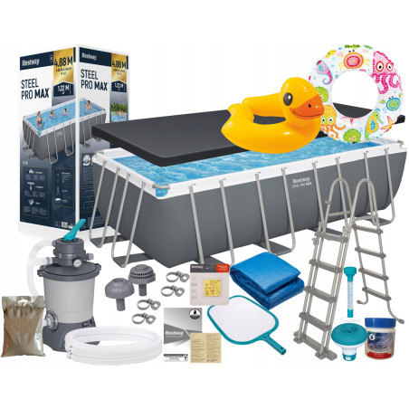 Basen Ogrodowy Bestway 56671 488x244x122cm Pompa piaskowa Pokrywa Chlor