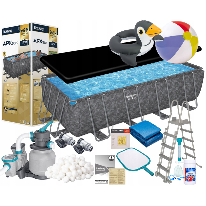 Bestway 561KA Basen ogrodowy Całoroczny 549x274x132cm Pompa piaskowa Pokrywa Chlor