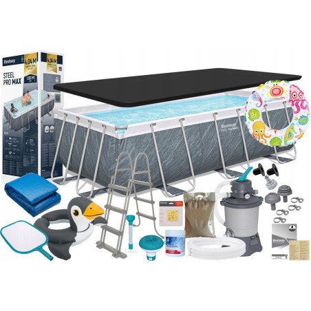 Bestway 56721 Basen Ogrodowy 404x201x100cm Pompa piaskowa Pokrywa Chlor