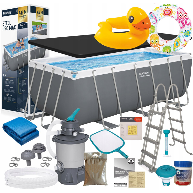 Bestway 56457 Basen Ogrodowy 412x201x122cm Pompa piaskowa Drabinka Pokrywa