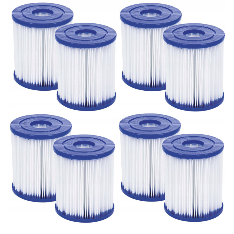 Komplet ośmiu filtrów typu I firmy Bestway pasujących do pomp również tej firmy o numerach katalogowych: