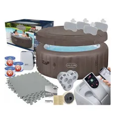 Nowoczesne SPA teraz może stanąć w każdym ogródku! Wystarczy zakupić zestaw Bestway i cieszyć się hydromasażem wykonanym przez tysiące bąbelków! W skład zestawu wchodzi zbiornik o wymiarach 180 x 180 x 66 cm. Pomieści do sześciu osób, a jego ścianki zostały wykonane z mocnego PVC, co daje gwarancję trwałości na lata. Z basenem zintegrowany jest podgrzewacz, dzięki któremu temperaturę wody w zbiorniku można podnieść nawet do 40 stopni C. O czystość wody zadba pompa filtrująca o wydajności 1325 litrów/godz. wraz z papierowym filtrem. W zestawie znajduje się także specjalna pokrywa zabezpieczająca. Wystarczy założyć ją na zbiornik, gdy nikt nie korzysta ze SPA, by mieć pewność, że żadne zanieczyszczenia nie wpadną do wody. Przez montaż i obsługę urządzenia przeprowadzi jasna instrukcja. Produkt jest całkowicie bezpieczny. Posiada certyfikaty CE/GS/EMC.
