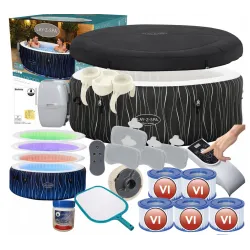 W skład zestawu wchodzi również wkład do filtra oraz dyfuzor chemii. HOLLYWOOD nadmuchuje się szybko i wygodnie przy pomocy pompy spa, dzięki czemu możesz spędzać więcej czasu na relaksie niż na montażu.