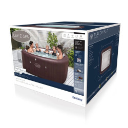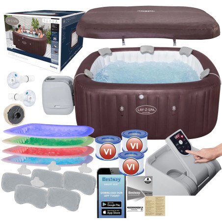 Nadmuchiwane 5-7 osobowe jaccuzi/spa ze 180 dyszami AirJet oraz 10 dyszami HydroJet Pro ™. Spa zostało wyposażone w system oświetlenia ColorJet LED, które zmienia kolory zapewniając jeszcze więcej unikalnych wrażeń. Różnorodność delikatnych kolorów oświetlenia otoczenia sprawia, że sesje spa są jeszcze przyjemniejsze, a nastrój jest odpowiedni.