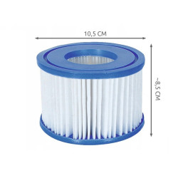 Filtr do pompy basenowej typ VI marki Bestway pasuje do wszystkich pomp jacuzzi Lay-Z Spa firmy Bestway. Filtr razem z pompą zapewnią czystość wody przez cały sezon. W opakowaniu znajdują się dwie sztuki o wymiarach około 8x10,5 cm każdy.