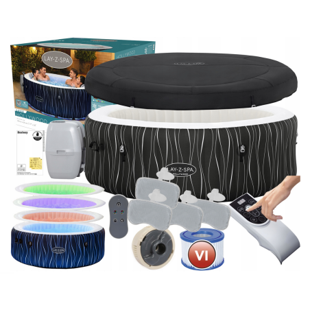 Lay-Z-Spa™ HAWAII wyposażone jest w 7 kolorowe, oświetlenie LED sterowane pilotem.