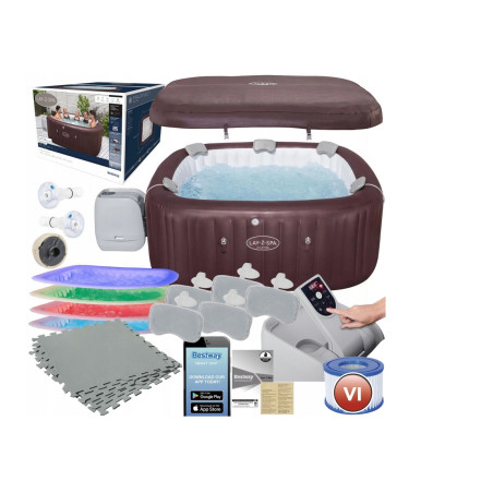 Nadmuchiwane 5-7 osobowe jaccuzi/spa ze 180 dyszami AirJet oraz 10 dyszami HydroJet Pro ™. Spa zostało wyposażone w system oświetlenia ColorJet LED, które zmienia kolory zapewniając jeszcze więcej unikalnych wrażeń. Różnorodność delikatnych kolorów oświetlenia otoczenia sprawia, że sesje spa są jeszcze przyjemniejsze, a nastrój jest odpowiedni.
