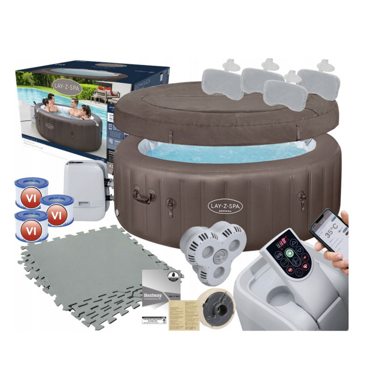 Nowoczesne SPA teraz może stanąć w każdym ogródku! Wystarczy zakupić zestaw Bestway i cieszyć się hydromasażem wykonanym przez tysiące bąbelków! W skład zestawu wchodzi zbiornik o wymiarach 196 x 71 cm. Pomieści do sześciu osób, a jego ścianki zostały wykonane z mocnego PVC, co daje gwarancję trwałości na lata. SPA posiada również hydrodynamiczny system masażu strumieniem wody. Z basenem zintegrowany jest podgrzewacz, dzięki któremu temperaturę wody w zbiorniku można podnieść nawet do 40 stopni C. O czystość wody zadba pompa filtrująca o wydajności 3975 litrów/godz. wraz z papierowym filtrem. W zestawie znajduje się także specjalna pokrywa zabezpieczająca. Wystarczy założyć ją na zbiornik, gdy nikt nie korzysta ze SPA, by mieć pewność, że żadne zanieczyszczenia nie wpadną do wody. Przez montaż i obsługę urządzenia przeprowadzi jasna instrukcja. Produkt jest całkowicie bezpieczny. Posiada certyfikaty CE/GS/EMC.