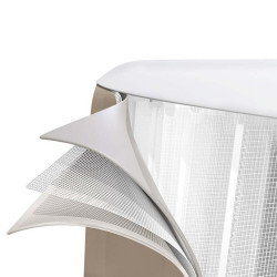 Nadmuchiwane ściany spa wykonane są ze wzmocnionego materiału DuraPlus™ zapewniającego najwyższy komfort i trwałość. Cechą charakterystyczną spa jest system Airjet™ łączący ciepło wody i działanie 140 dysz powietrza.