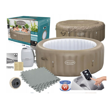 W skład zestawu wchodzi również wkład do filtra oraz dyfuzor chemii. Palm Springs nadmuchuje się szybko i wygodnie przy pomocy pompy spa, dzięki czemu możesz spędzać więcej czasu na relaksie niż na montażu.