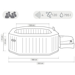 Doskonały pomysł na wypoczywanie w zaciszu domowym. Osobiste SPA ze świetnym wyposażeniem. Dysze produkujące relaksujące i masujące bąbelki oraz podgrzewacz sprawią, że każdy dostosuje temperaturę do swoich potrzeb.