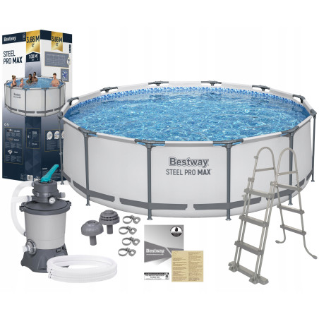 Bestway 56418 Basen Ogrodowy Stelażowy 366x100cm Drabinka Pompa piaskowa