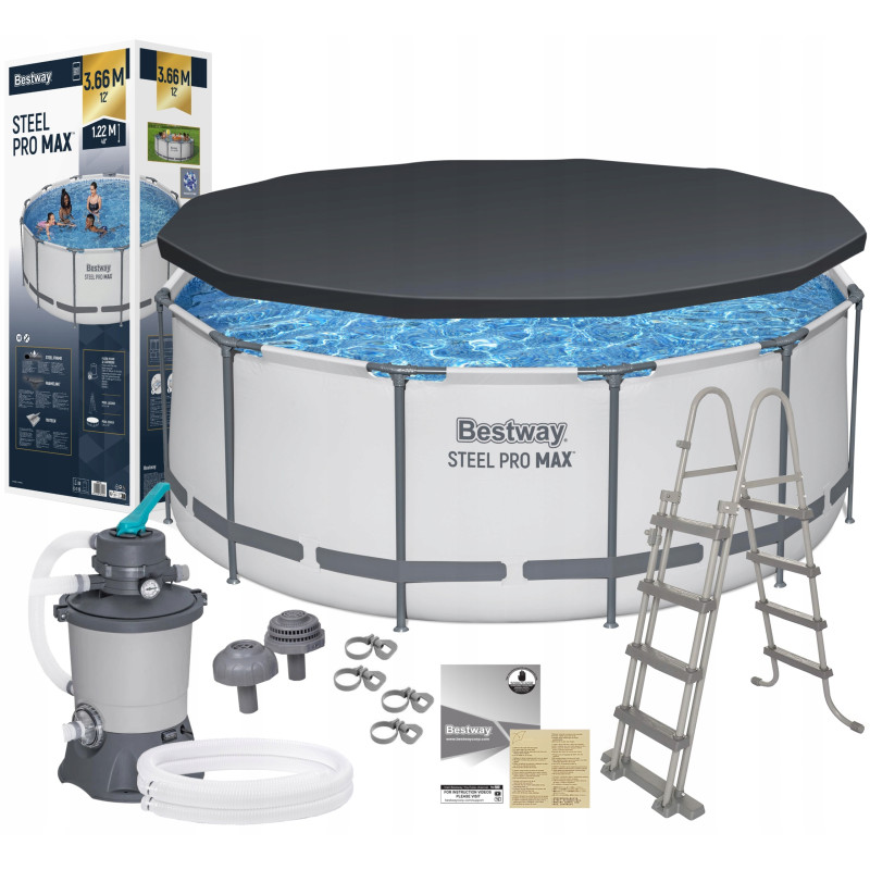 Bestway 56420 366x122cm Basen Ogrodowy Stelażowy Pompa piaskowa Pokrywa