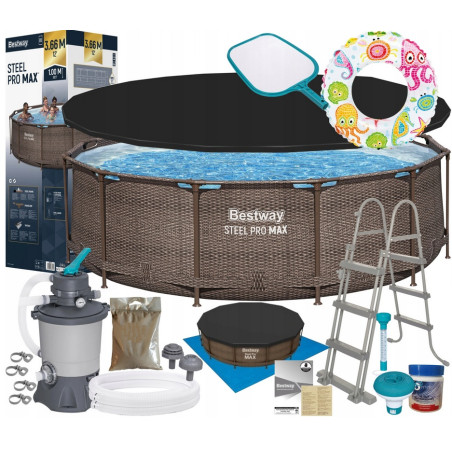 Bestway 56709 Basen ogrodowy 366x100cm Pompa piaskowa Pokrywa Chlor