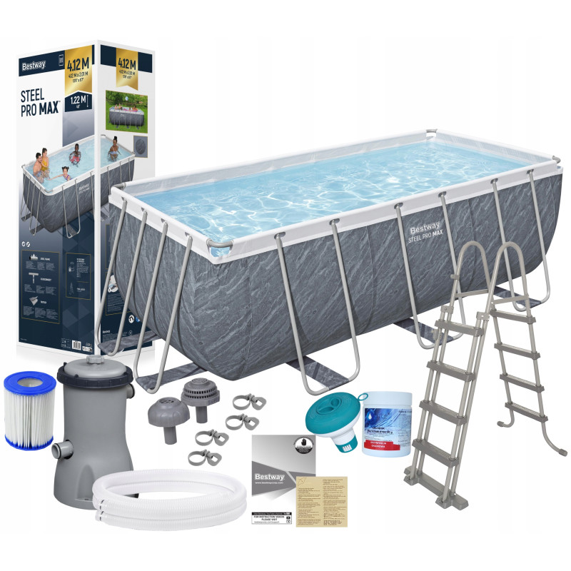 Basen Ogrodowy 412x201x122cm Stelażowy Pompa Drabinka Chlor Bestway 56722