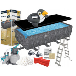 Basen Ogrodowy Bestway 56671 Stelażowy 488x244x122cm Pompa piaskowa Piasek