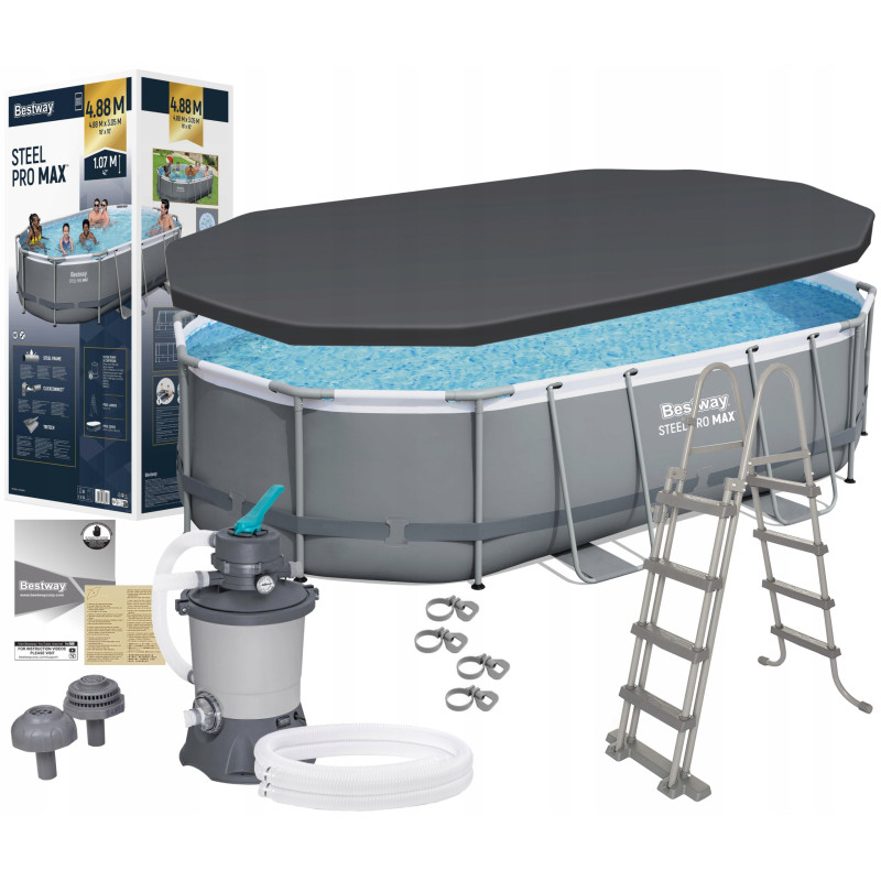Bestway 56448 Basen Ogrodowy 488x305x107cm Pompa piaskowa Pokrywa Drabinka