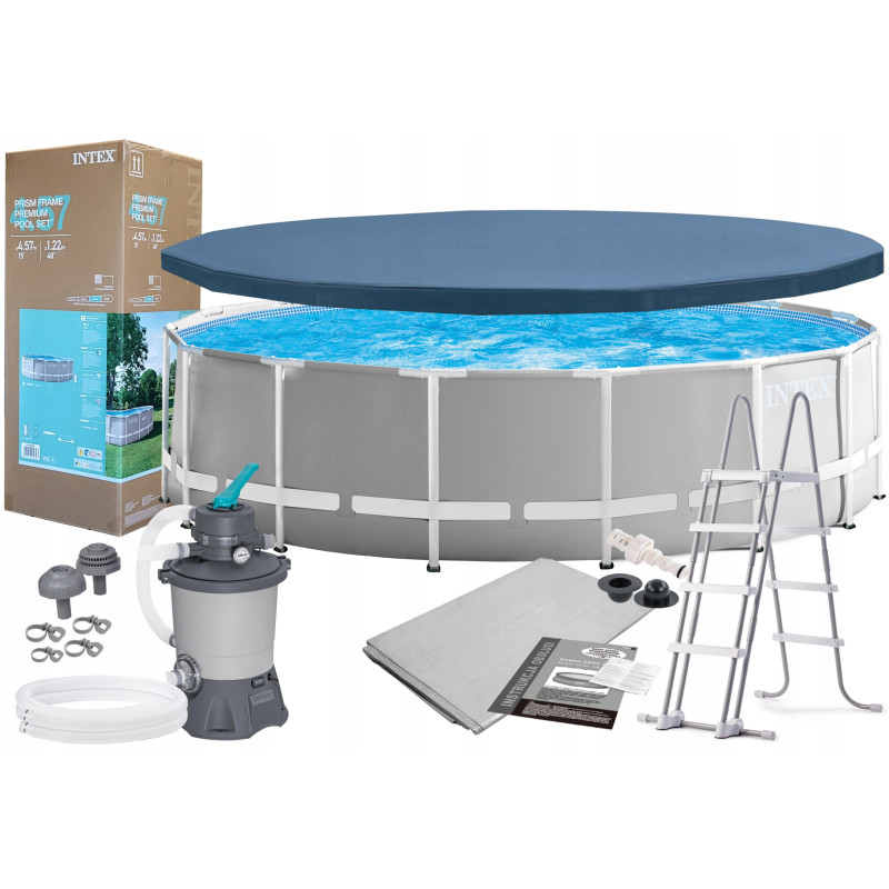 Intex 26726 Basen ogrodowy Stelażowy 457x122cm Pompa piaskowa Drabinka